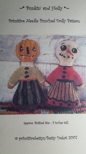 Punkin' and Holly - Punch Needle Pattern by Primitive Betty