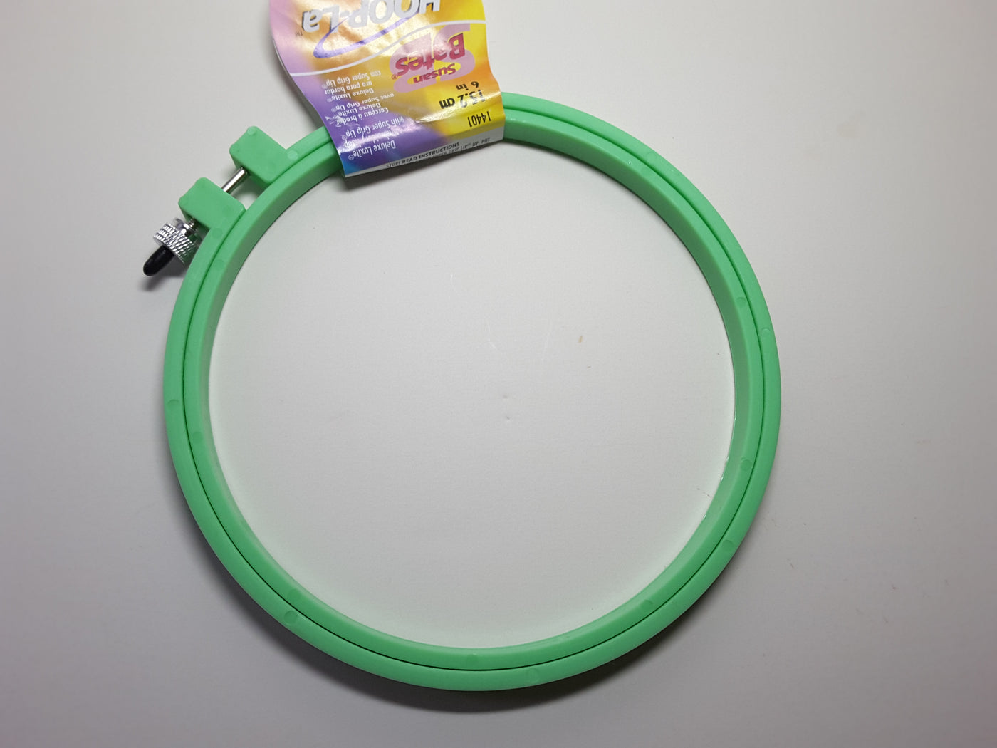 6 inch no slip hoop - unique interlocking design. Holds fabric firmly in position with no slippage. Firm, durable and strong.
