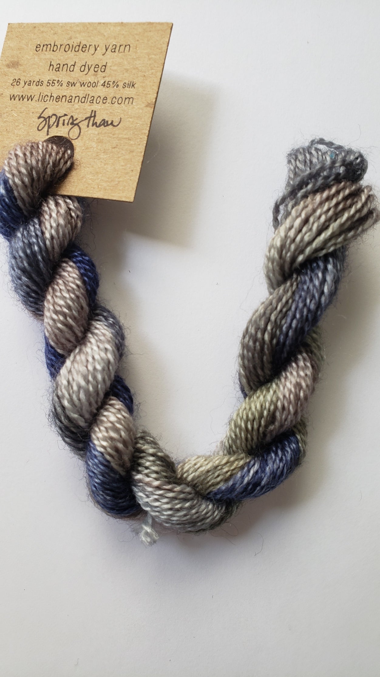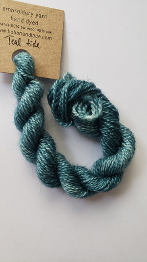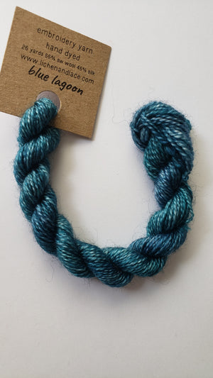{"id":9009322328303,"title":"Lichen and Lace Embroidery Thread Wool\/Silk - BLUE","handle":"lichen-and-lace-embroidery-thread-wool-silk-blue","description":"\u003cp\u003e\u003cspan\u003eLichen and Lace hand dyed embroidery yarn is soft, easy to stitch, with gorgeous depth of colour. Each skein of embroidery yarn is 26 yards and 3 grams, spun from 55% Superwash Bluefaced Leicester Wool and 45% Silk.\u003c\/span\u003e\u003c\/p\u003e\n\u003cp\u003e\u003cspan\u003eThese threads cannot be split. They are equivalent to 2 strands of DMC thread.\u003c\/span\u003e\u003c\/p\u003e\n\u003cp\u003e\u003cspan\u003e*****These are hand dyed so there will be variations in the threads. You may receive threads that do not exactly match the picture shown on the screen.*****\u003c\/span\u003e\u003c\/p\u003e","published_at":"2025-07-19T01:33:02-04:00","created_at":"2025-07-07T01:52:25-04:00","vendor":"Lichen and Lace","type":"Wool Silk Thread","tags":["applique thread","embroidery thread","hand dyed","hand dyed thread","L and L","new","new at shop","new in store","silk thread","wool thread"],"price":595,"price_min":595,"price_max":595,"available":true,"price_varies":false,"compare_at_price":null,"compare_at_price_min":0,"compare_at_price_max":0,"compare_at_price_varies":false,"variants":[{"id":46606802387183,"title":"Beach Glass","option1":"Beach Glass","option2":null,"option3":null,"sku":null,"requires_shipping":true,"taxable":false,"featured_image":{"id":44880361717999,"product_id":9009322328303,"position":2,"created_at":"2025-07-19T01:24:06-04:00","updated_at":"2025-07-19T01:33:14-04:00","alt":null,"width":1211,"height":2153,"src":"\/\/redsandsrughookingstudio.com\/cdn\/shop\/files\/20250718_143607.jpg?v=1752903194","variant_ids":[46606802387183]},"available":true,"name":"Lichen and Lace Embroidery Thread Wool\/Silk - BLUE - Beach Glass","public_title":"Beach Glass","options":["Beach Glass"],"price":595,"weight":10,"compare_at_price":null,"inventory_management":"shopify","barcode":"","featured_media":{"alt":null,"id":36675001614575,"position":2,"preview_image":{"aspect_ratio":0.562,"height":2153,"width":1211,"src":"\/\/redsandsrughookingstudio.com\/cdn\/shop\/files\/20250718_143607.jpg?v=1752903194"}},"requires_selling_plan":false,"selling_plan_allocations":[]},{"id":46606802419951,"title":"Teal Tide","option1":"Teal Tide","option2":null,"option3":null,"sku":null,"requires_shipping":true,"taxable":false,"featured_image":{"id":44880361357551,"product_id":9009322328303,"position":3,"created_at":"2025-07-19T01:23:53-04:00","updated_at":"2025-07-19T01:33:14-04:00","alt":null,"width":1235,"height":2195,"src":"\/\/redsandsrughookingstudio.com\/cdn\/shop\/files\/20250718_143640.jpg?v=1752903194","variant_ids":[46606802419951]},"available":true,"name":"Lichen and Lace Embroidery Thread Wool\/Silk - BLUE - Teal Tide","public_title":"Teal Tide","options":["Teal Tide"],"price":595,"weight":10,"compare_at_price":null,"inventory_management":"shopify","barcode":"","featured_media":{"alt":null,"id":36675001254127,"position":3,"preview_image":{"aspect_ratio":0.563,"height":2195,"width":1235,"src":"\/\/redsandsrughookingstudio.com\/cdn\/shop\/files\/20250718_143640.jpg?v=1752903194"}},"requires_selling_plan":false,"selling_plan_allocations":[]},{"id":46606802452719,"title":"Spring Thaw","option1":"Spring Thaw","option2":null,"option3":null,"sku":null,"requires_shipping":true,"taxable":false,"featured_image":{"id":44880372793583,"product_id":9009322328303,"position":4,"created_at":"2025-07-19T01:30:32-04:00","updated_at":"2025-07-19T01:33:14-04:00","alt":null,"width":1252,"height":2227,"src":"\/\/redsandsrughookingstudio.com\/cdn\/shop\/files\/20250718_143344_3e6a23c7-9054-424a-9b55-73c5d7d82ced.jpg?v=1752903194","variant_ids":[46606802452719]},"available":true,"name":"Lichen and Lace Embroidery Thread Wool\/Silk - BLUE - Spring Thaw","public_title":"Spring Thaw","options":["Spring Thaw"],"price":595,"weight":10,"compare_at_price":null,"inventory_management":"shopify","barcode":"","featured_media":{"alt":null,"id":36675010101487,"position":4,"preview_image":{"aspect_ratio":0.562,"height":2227,"width":1252,"src":"\/\/redsandsrughookingstudio.com\/cdn\/shop\/files\/20250718_143344_3e6a23c7-9054-424a-9b55-73c5d7d82ced.jpg?v=1752903194"}},"requires_selling_plan":false,"selling_plan_allocations":[]},{"id":46606802485487,"title":"Blue Lagoon","option1":"Blue Lagoon","option2":null,"option3":null,"sku":null,"requires_shipping":true,"taxable":false,"featured_image":{"id":44880361423087,"product_id":9009322328303,"position":5,"created_at":"2025-07-19T01:23:59-04:00","updated_at":"2025-07-19T01:33:14-04:00","alt":null,"width":1195,"height":2124,"src":"\/\/redsandsrughookingstudio.com\/cdn\/shop\/files\/20250718_143623.jpg?v=1752903194","variant_ids":[46606802485487]},"available":true,"name":"Lichen and Lace Embroidery Thread Wool\/Silk - BLUE - Blue Lagoon","public_title":"Blue Lagoon","options":["Blue Lagoon"],"price":595,"weight":10,"compare_at_price":null,"inventory_management":"shopify","barcode":"","featured_media":{"alt":null,"id":36675001319663,"position":5,"preview_image":{"aspect_ratio":0.563,"height":2124,"width":1195,"src":"\/\/redsandsrughookingstudio.com\/cdn\/shop\/files\/20250718_143623.jpg?v=1752903194"}},"requires_selling_plan":false,"selling_plan_allocations":[]},{"id":46606802977007,"title":"Calm Waters","option1":"Calm Waters","option2":null,"option3":null,"sku":null,"requires_shipping":true,"taxable":false,"featured_image":{"id":44880360669423,"product_id":9009322328303,"position":6,"created_at":"2025-07-19T01:23:46-04:00","updated_at":"2025-07-19T01:33:14-04:00","alt":null,"width":1193,"height":2121,"src":"\/\/redsandsrughookingstudio.com\/cdn\/shop\/files\/20250718_143656.jpg?v=1752903194","variant_ids":[46606802977007]},"available":true,"name":"Lichen and Lace Embroidery Thread Wool\/Silk - BLUE - Calm Waters","public_title":"Calm Waters","options":["Calm Waters"],"price":595,"weight":10,"compare_at_price":null