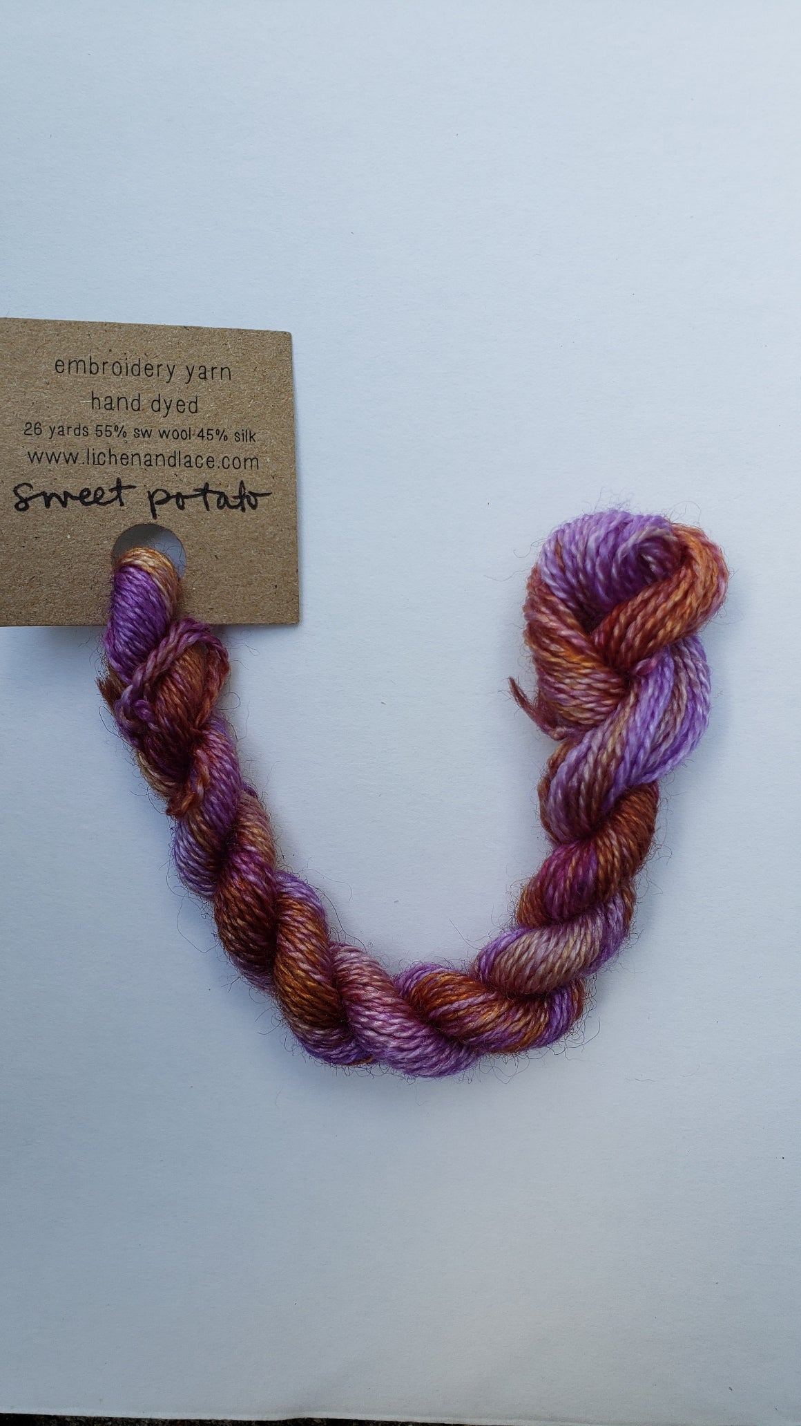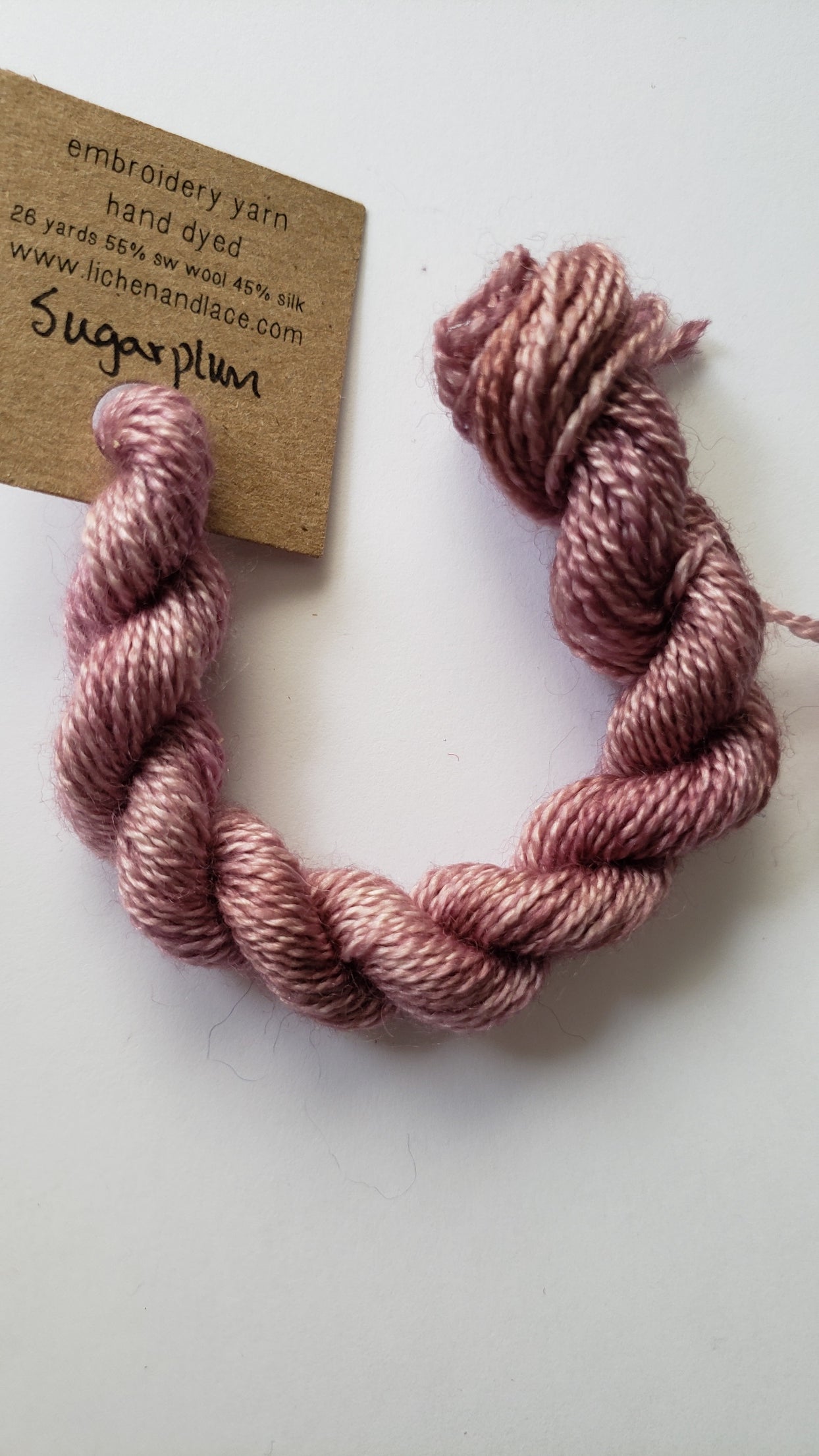 {"id":9009322557679,"title":"Lichen and Lace Embroidery Thread Wool\/Silk - PURPLE","handle":"lichen-and-lace-embroidery-thread-wool-silk-purple","description":"\u003cp\u003e\u003cspan\u003eLichen and Lace hand dyed embroidery yarn is soft, easy to stitch, with gorgeous depth of colour. Each skein of embroidery yarn is 26 yards and 3 grams, spun from 55% Superwash Bluefaced Leicester Wool and 45% Silk.\u003c\/span\u003e\u003c\/p\u003e\n\u003cp\u003e\u003cspan\u003eThese threads cannot be split. They are equivalent to 2 strands of DMC thread.\u003c\/span\u003e\u003c\/p\u003e\n\u003cp\u003e\u003cspan\u003e*****These are hand dyed so there will be variations in the threads. You may receive threads that do not exactly match the picture shown on the screen.*****\u003c\/span\u003e\u003c\/p\u003e","published_at":"2025-07-19T00:46:49-04:00","created_at":"2025-07-07T01:54:48-04:00","vendor":"Lichen and Lace","type":"Wool Silk Thread","tags":["applique thread","embroidery thread","hand dyed","hand dyed thread","L and L","new","new at shop","new in store","silk thread","wool thread"],"price":595,"price_min":595,"price_max":595,"available":true,"price_varies":false,"compare_at_price":null,"compare_at_price_min":0,"compare_at_price_max":0,"compare_at_price_varies":false,"variants":[{"id":46606804484335,"title":"Amethyst","option1":"Amethyst","option2":null,"option3":null,"sku":null,"requires_shipping":true,"taxable":false,"featured_image":{"id":44880259317999,"product_id":9009322557679,"position":9,"created_at":"2025-07-19T00:43:01-04:00","updated_at":"2025-07-19T00:46:50-04:00","alt":null,"width":1076,"height":1913,"src":"\/\/redsandsrughookingstudio.com\/cdn\/shop\/files\/20250718_143709.jpg?v=1752900410","variant_ids":[46606804484335]},"available":true,"name":"Lichen and Lace Embroidery Thread Wool\/Silk - PURPLE - Amethyst","public_title":"Amethyst","options":["Amethyst"],"price":595,"weight":10,"compare_at_price":null,"inventory_management":"shopify","barcode":"","featured_media":{"alt":null,"id":36674920415471,"position":9,"preview_image":{"aspect_ratio":0.562,"height":1913,"width":1076,"src":"\/\/redsandsrughookingstudio.com\/cdn\/shop\/files\/20250718_143709.jpg?v=1752900410"}},"requires_selling_plan":false,"selling_plan_allocations":[]},{"id":46606804517103,"title":"Lilac","option1":"Lilac","option2":null,"option3":null,"sku":null,"requires_shipping":true,"taxable":false,"featured_image":{"id":44880231334127,"product_id":9009322557679,"position":2,"created_at":"2025-07-19T00:33:46-04:00","updated_at":"2025-07-19T00:46:50-04:00","alt":null,"width":1157,"height":2057,"src":"\/\/redsandsrughookingstudio.com\/cdn\/shop\/files\/20250718_143430.jpg?v=1752900410","variant_ids":[46606804517103]},"available":true,"name":"Lichen and Lace Embroidery Thread Wool\/Silk - PURPLE - Lilac","public_title":"Lilac","options":["Lilac"],"price":595,"weight":10,"compare_at_price":null,"inventory_management":"shopify","barcode":"","featured_media":{"alt":null,"id":36674900164847,"position":2,"preview_image":{"aspect_ratio":0.562,"height":2057,"width":1157,"src":"\/\/redsandsrughookingstudio.com\/cdn\/shop\/files\/20250718_143430.jpg?v=1752900410"}},"requires_selling_plan":false,"selling_plan_allocations":[]},{"id":46606804549871,"title":"OOAK","option1":"OOAK","option2":null,"option3":null,"sku":null,"requires_shipping":true,"taxable":false,"featured_image":{"id":44880230449391,"product_id":9009322557679,"position":3,"created_at":"2025-07-19T00:33:34-04:00","updated_at":"2025-07-19T00:46:50-04:00","alt":null,"width":1162,"height":2067,"src":"\/\/redsandsrughookingstudio.com\/cdn\/shop\/files\/20250718_143444.jpg?v=1752900410","variant_ids":[46606804549871]},"available":true,"name":"Lichen and Lace Embroidery Thread Wool\/Silk - PURPLE - OOAK","public_title":"OOAK","options":["OOAK"],"price":595,"weight":10,"compare_at_price":null,"inventory_management":"shopify","barcode":"","featured_media":{"alt":null,"id":36674899673327,"position":3,"preview_image":{"aspect_ratio":0.562,"height":2067,"width":1162,"src":"\/\/redsandsrughookingstudio.com\/cdn\/shop\/files\/20250718_143444.jpg?v=1752900410"}},"requires_selling_plan":false,"selling_plan_allocations":[]},{"id":46606804582639,"title":"Sugar Plum","option1":"Sugar Plum","option2":null,"option3":null,"sku":null,"requires_shipping":true,"taxable":false,"featured_image":{"id":44880262660335,"product_id":9009322557679,"position":10,"created_at":"2025-07-19T00:44:26-04:00","updated_at":"2025-07-19T00:46:50-04:00","alt":null,"width":1244,"height":2211,"src":"\/\/redsandsrughookingstudio.com\/cdn\/shop\/files\/20250718_143529.jpg?v=1752900410","variant_ids":[46606804582639]},"available":true,"name":"Lichen and Lace Embroidery Thread Wool\/Silk - PURPLE - Sugar Plum","public_title":"Sugar Plum","options":["Sugar Plum"],"price":595,"weight":10,"compare_at_price":null,"inventory_management":"shopify","barcode":"","featured_media":{"alt":null,"id":36674923167983,"position":10,"preview_image":{"aspect_ratio":0.563,"height":2211,"width":1244,"src":"\/\/redsandsrughookingstudio.com\/cdn\/shop\/files\/20250718_143529.jpg?v=1752900410"}},"requires_selling_plan":false,"selling_plan_allocations":[]},{"id":46606804615407,"title":"Blackberry Pie","option1":"Blackberry Pie","option2":null,"option3":null,"sku":null,"requires_shipping":true,"taxable":false,"featured_image":{"id":44880221602031,"product_id":9009322557679,"position":4,"created_at":"2025-07-19T00:32:26-04:00","updated_at":"2025-07-19T00:46:50-04:00","alt":null,"width":1255,"height":2232,"src":"\/\/redsandsrughookingstudio.com\/cdn\/shop\/files\/20250718_143458.jpg?v=1752900410","variant_ids":[46606804615407]},"available":true,"name":"Lichen and Lace Embroidery Thread Wool\/Silk - PURPLE - Blackberry Pie","public_title":"Blackberry Pie","options":["Blackberry Pie"],"price":595,"weight":10,"compare_at_price":null,"inventory_management":"shopify","barcode":"","featured_media":{"alt":null,"id":36674894430447,"position":4,"preview_