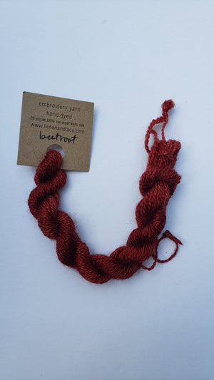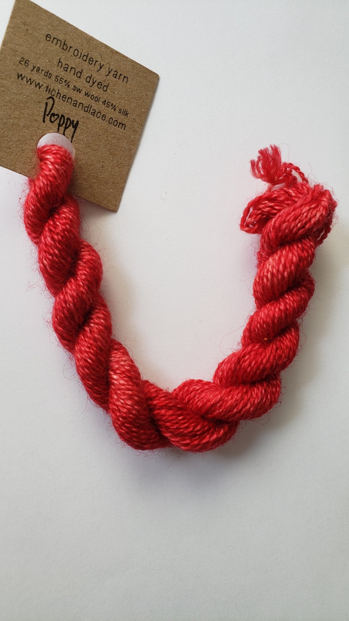 {"id":9009321509103,"title":"Lichen and Lace Embroidery Thread Wool\/Silk - RED","handle":"lichen-and-lace-embroidery-thread-wool-silk-red","description":"\u003cp\u003e\u003cspan\u003eLichen and Lace hand dyed embroidery yarn is soft, easy to stitch, with gorgeous depth of colour. Each skein of embroidery yarn is 26 yards and 3 grams, spun from 55% Superwash Bluefaced Leicester Wool and 45% Silk.\u003c\/span\u003e\u003c\/p\u003e\n\u003cp\u003e\u003cspan\u003eThese threads cannot be split. They are equivalent to 2 strands of DMC thread.\u003c\/span\u003e\u003c\/p\u003e\n\u003cp\u003e\u003cspan\u003e*****These are hand dyed so there will be variations in the threads. You may receive threads that do not exactly match the picture shown on the screen.*****\u003c\/span\u003e\u003c\/p\u003e","published_at":"2025-07-19T01:00:22-04:00","created_at":"2025-07-07T01:49:41-04:00","vendor":"Lichen and Lace","type":"Wool Silk Thread","tags":["applique thread","embroidery thread","hand dyed","hand dyed thread","L and L","new","new at shop","new in store","silk thread","wool thread"],"price":595,"price_min":595,"price_max":595,"available":true,"price_varies":false,"compare_at_price":null,"compare_at_price_min":0,"compare_at_price_max":0,"compare_at_price_varies":false,"variants":[{"id":46606800322799,"title":"Coral","option1":"Coral","option2":null,"option3":null,"sku":null,"requires_shipping":true,"taxable":false,"featured_image":{"id":44880294117615,"product_id":9009321509103,"position":2,"created_at":"2025-07-19T00:54:49-04:00","updated_at":"2025-07-19T01:00:33-04:00","alt":null,"width":1299,"height":2310,"src":"\/\/redsandsrughookingstudio.com\/cdn\/shop\/files\/20250718_142909.jpg?v=1752901233","variant_ids":[46606800322799]},"available":true,"name":"Lichen and Lace Embroidery Thread Wool\/Silk - RED - Coral","public_title":"Coral","options":["Coral"],"price":595,"weight":10,"compare_at_price":null,"inventory_management":"shopify","barcode":"","featured_media":{"alt":null,"id":36674945351919,"position":2,"preview_image":{"aspect_ratio":0.562,"height":2310,"width":1299,"src":"\/\/redsandsrughookingstudio.com\/cdn\/shop\/files\/20250718_142909.jpg?v=1752901233"}},"requires_selling_plan":false,"selling_plan_allocations":[]},{"id":46606800355567,"title":"Rosehip","option1":"Rosehip","option2":null,"option3":null,"sku":null,"requires_shipping":true,"taxable":false,"featured_image":{"id":44880293855471,"product_id":9009321509103,"position":3,"created_at":"2025-07-19T00:54:35-04:00","updated_at":"2025-07-19T01:00:33-04:00","alt":null,"width":1237,"height":2199,"src":"\/\/redsandsrughookingstudio.com\/cdn\/shop\/files\/20250718_142933.jpg?v=1752901233","variant_ids":[46606800355567]},"available":true,"name":"Lichen and Lace Embroidery Thread Wool\/Silk - RED - Rosehip","public_title":"Rosehip","options":["Rosehip"],"price":595,"weight":10,"compare_at_price":null,"inventory_management":"shopify","barcode":"","featured_media":{"alt":null,"id":36674945057007,"position":3,"preview_image":{"aspect_ratio":0.563,"height":2199,"width":1237,"src":"\/\/redsandsrughookingstudio.com\/cdn\/shop\/files\/20250718_142933.jpg?v=1752901233"}},"requires_selling_plan":false,"selling_plan_allocations":[]},{"id":46606800388335,"title":"Poppy","option1":"Poppy","option2":null,"option3":null,"sku":null,"requires_shipping":true,"taxable":false,"featured_image":{"id":44880294936815,"product_id":9009321509103,"position":4,"created_at":"2025-07-19T00:55:10-04:00","updated_at":"2025-07-19T01:00:33-04:00","alt":null,"width":1133,"height":2015,"src":"\/\/redsandsrughookingstudio.com\/cdn\/shop\/files\/20250718_142848.jpg?v=1752901233","variant_ids":[46606800388335]},"available":true,"name":"Lichen and Lace Embroidery Thread Wool\/Silk - RED - Poppy","public_title":"Poppy","options":["Poppy"],"price":595,"weight":10,"compare_at_price":null,"inventory_management":"shopify","barcode":"","featured_media":{"alt":null,"id":36674945908975,"position":4,"preview_image":{"aspect_ratio":0.562,"height":2015,"width":1133,"src":"\/\/redsandsrughookingstudio.com\/cdn\/shop\/files\/20250718_142848.jpg?v=1752901233"}},"requires_selling_plan":false,"selling_plan_allocations":[]},{"id":46606800421103,"title":"Rosewood","option1":"Rosewood","option2":null,"option3":null,"sku":null,"requires_shipping":true,"taxable":false,"featured_image":{"id":44880295493871,"product_id":9009321509103,"position":5,"created_at":"2025-07-19T00:55:34-04:00","updated_at":"2025-07-19T01:00:33-04:00","alt":null,"width":1237,"height":2198,"src":"\/\/redsandsrughookingstudio.com\/cdn\/shop\/files\/20250718_142826.jpg?v=1752901233","variant_ids":[46606800421103]},"available":true,"name":"Lichen and Lace Embroidery Thread Wool\/Silk - RED - Rosewood","public_title":"Rosewood","options":["Rosewood"],"price":595,"weight":10,"compare_at_price":null,"inventory_management":"shopify","barcode":"","featured_media":{"alt":null,"id":36674946466031,"position":5,"preview_image":{"aspect_ratio":0.563,"height":2198,"width":1237,"src":"\/\/redsandsrughookingstudio.com\/cdn\/shop\/files\/20250718_142826.jpg?v=1752901233"}},"requires_selling_plan":false,"selling_plan_allocations":[]},{"id":46642412650735,"title":"Beetroot","option1":"Beetroot","option2":null,"option3":null,"sku":null,"requires_shipping":true,"taxable":false,"featured_image":{"id":44884500938991,"product_id":9009321509103,"position":6,"created_at":"2025-07-20T00:24:59-04:00","updated_at":"2025-07-20T00:24:59-04:00","alt":null,"width":1179,"height":2096,"src":"\/\/redsandsrughookingstudio.com\/cdn\/shop\/files\/20250719_131542.jpg?v=1752985499","variant_ids":[46642412650735]},"available":true,"name":"Lichen and Lace Embroidery Thread Wool\/Silk - RED - Beetroot","public_title":"Beetroot","options":["Beetroot"],"price":595,"weight":10,"compare_at_price":null,"inventory_management":"shopify","barcode":"","featured_media":{"alt":null,"id":36677575213295,"position":6,"preview_image":{"aspect_ratio":0.563,"height":2096,"width":1179,"src":"